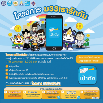 ม.33 เรารักกัน คืออะไร? อีกหนึ่งมาตรการที่ได้รับความสนใจไม่น้อย และมีการเรียกร้องความเยียวยาช่วยเหลือ นั่นคือมาตรการ ม.33 เรารักกัน เนื่องจากกลุ่มที่จะสามารถเข้าร่วมและรับสิทธินี้ได้ คือ ผู้ประกันตน มาตรา 33 ในระบบประกันสังคม ที่ในช่วงแรกนั้นรัฐมุ่งเน้นไปที่กลุ่มผู้มีรายได้น้อย แต่กลุ่มมาตรา 33 ที่ได้รับความเดือดร้อนจากสถานการณ์โควิด-19 กลับเป็นกลุ่มที่ตกหล่นการช่วยเหลือ รัฐจึงเร่งช่วยเหลือด้วยการออกมาที่จะแจกจ่ายเงินเยียวยา 4,000 บาทตลอดทั้งโครงการ แบ่งจ่ายสัปดาห์ละ 1,000 บาท ผ่านแอพพลิเคชั่นเป๋าตัง โดยมีการกำหนดคุณสมบัติไว้ 5 ข้อหลักๆ ดังนี้ – เป็นผู้ประกันตนมาตรา 33 – มีสัญชาติไทย – ไม่เป็นผู้มีบัตรสวัสดิการแห่งรัฐ – ไม่ได้รับสิทธิโครงการ “เราชนะ” – ไม่มีเงินฝากในสถาบันการเงินรวมกันเกิน 500,000 บาท ณ วันที่ 31 ธันวาคม 2563 วิธีลงทะเบียน ม.33 เรารักกัน 1. เข้าสู่เว็บไซต์ www.ม33เรารักกัน.com หรือ (กดที่นี่)…